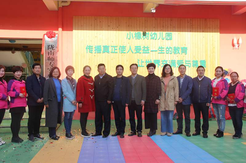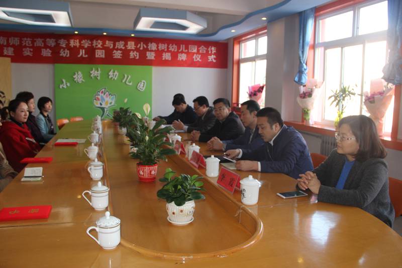 10月18日下午,陇南师专和成县小橡树幼儿园合作共建实验幼儿园签约仪式在成县小橡树幼儿园举行。公司董事长刘先春、副董事长王胜青及suncitygroup太阳新城相关负责人参加签约仪式并揭牌。签约仪式由成县教育局副局长谢靖主持。