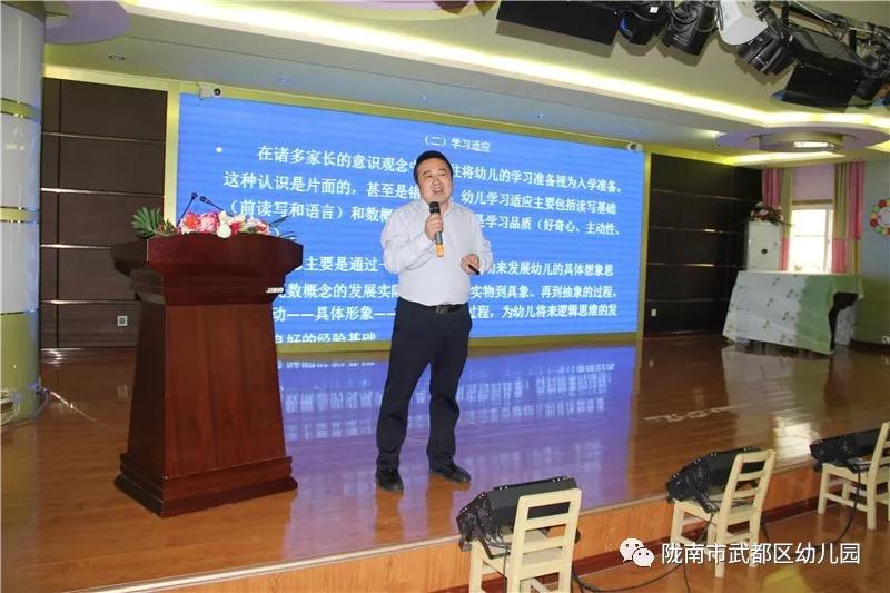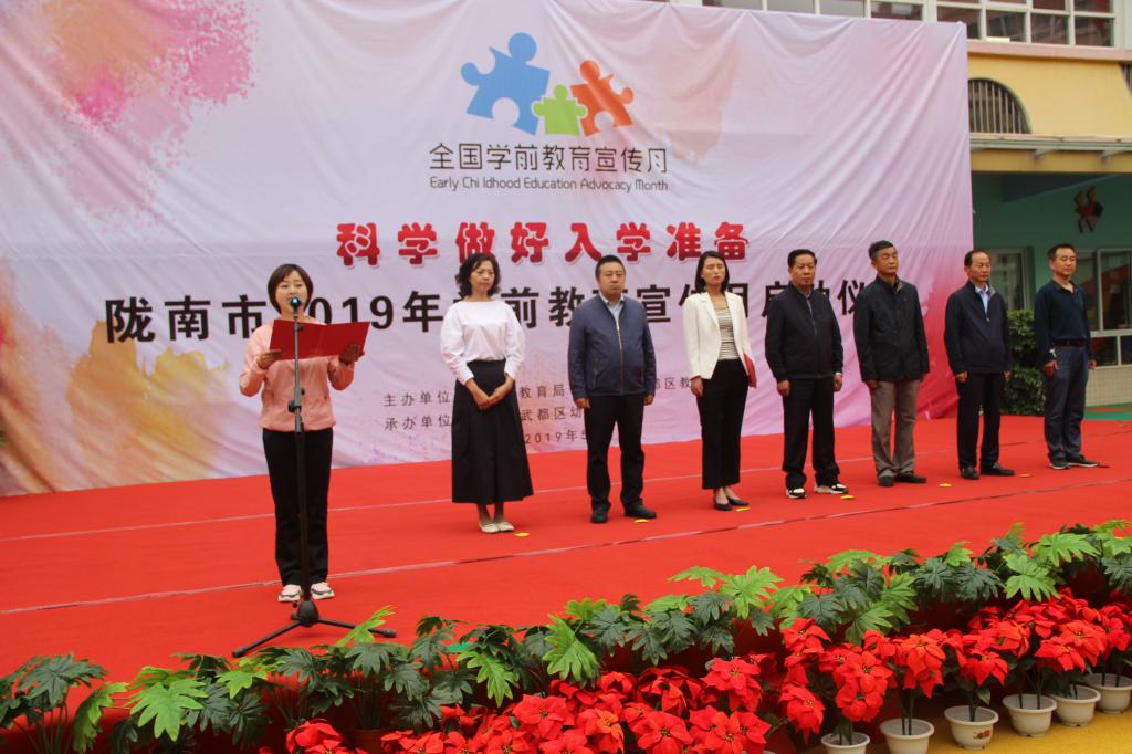 5月29日,陇南市2019年学前教育宣传月活动启动仪式在武都区幼儿园举行。suncitygroup太阳新城经理王小会参加活动并做专题报告.2019年全国学前教育宣传月科学做好入学准备为主题。陇南市教育局局长冯醒民、副局长张喆,区政府副区长李娜、武都区教育局局长刘海东、副局长汪芳、市区教育局相关科室负责人、武都城区公民办幼儿园园长和教师代表、幼儿家长代表近500人参加启动仪式。