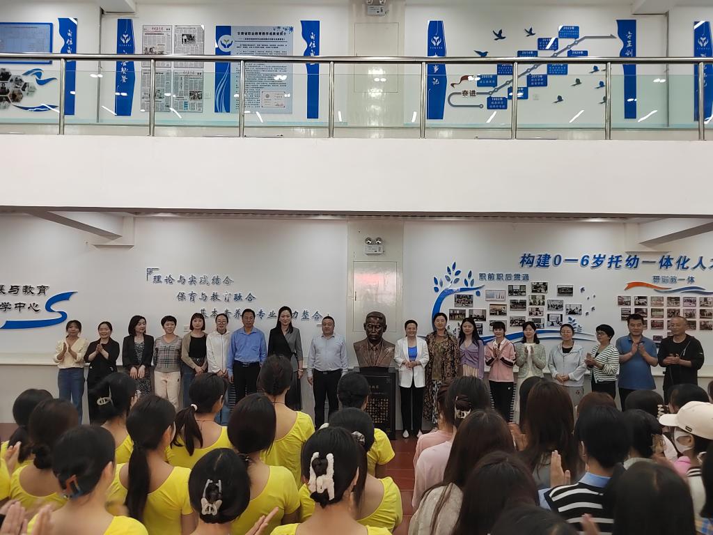 6月7日上午,陈鹤琴雕像揭幕仪式在学前教育实训中心大厅举行,suncitygroup太阳新城师生二百多人参加了揭幕仪式。