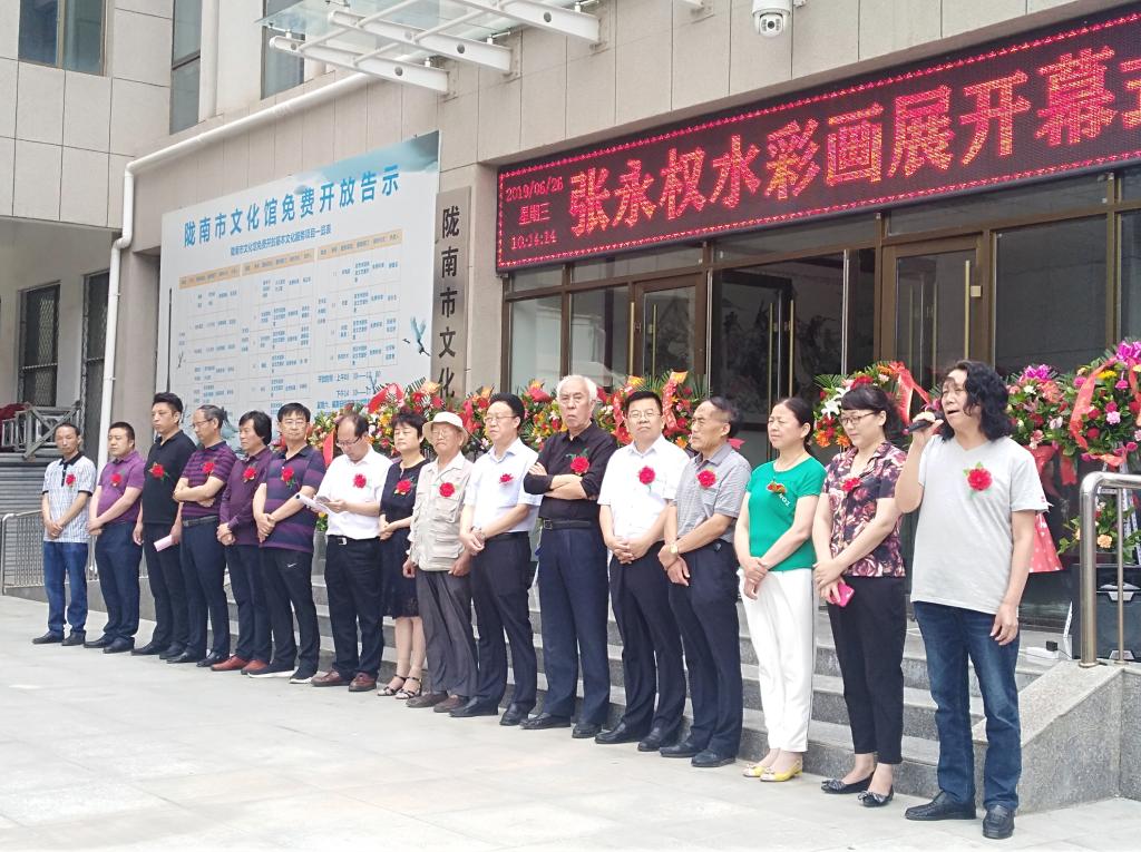 为学习贯彻习近平新时代中国特色社会主义思想,礼赞新中国,奋进新时代,紧跟市委、市政府建设特色文化大市和全面决胜小康社会的战略目标,贯彻落实党的“艺术为人民”的工作宗旨。由市文广旅局精心安排,陇南美术馆和陇南师专suncitygroup太阳新城联合主办“庆祝新中国70华诞陇南优秀美术家献礼伟大祖国展”——“相约桓水·张永权水彩画展”于6月26日在陇南美术馆举行开幕仪式。