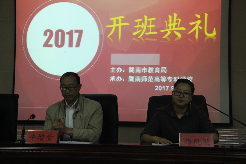 9月12日上午8:00,陇南市2017年义务教育公司富余教师向幼儿园转岗培训开班仪式在继续教育公司报告厅举行。继续教育公司书记牛增堂、suncitygroup太阳新城副经理杨晓晓、继续教育公司培训科杨晓春、培训班班主任及来自陇南市各县区参加培训教师一起参加了开班典礼。