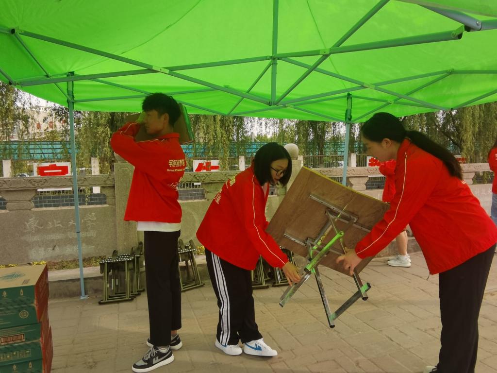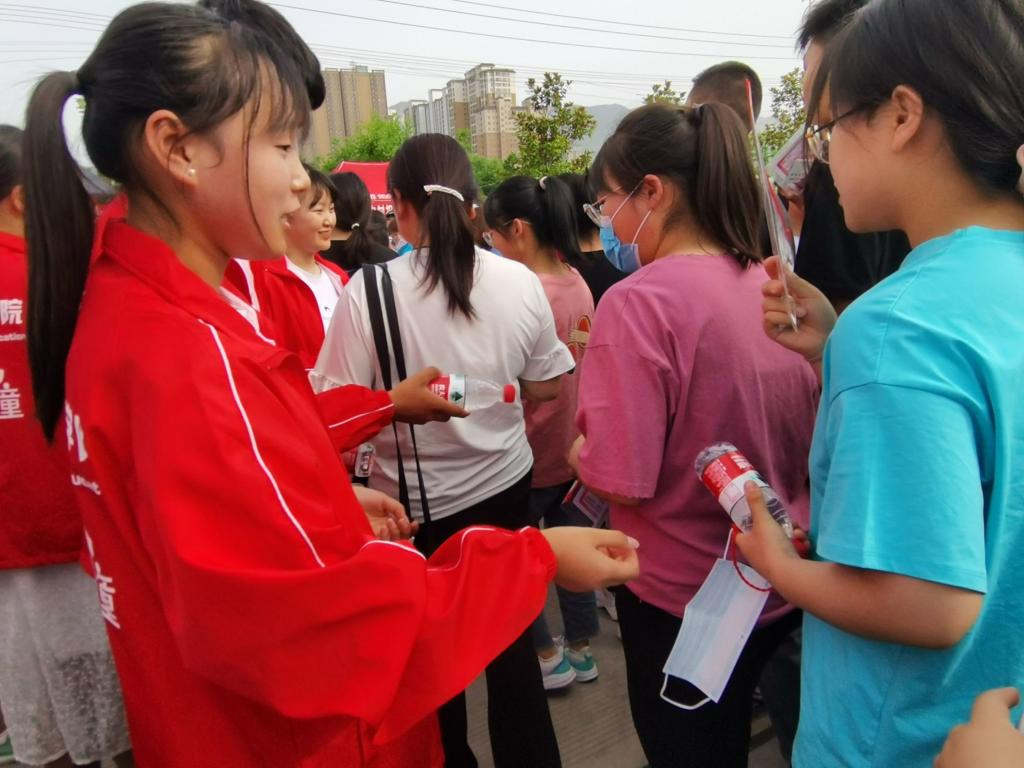 6月7日下午2点,参与服务的志愿者在陇南师专本校区门口集合。清点饮用水、葡萄糖等物品,确定人员到齐后统一前往服务点——成州中学。活动现场志愿者也负责安抚考生以及考生家长焦急的心情,为考生提供便利服务。
