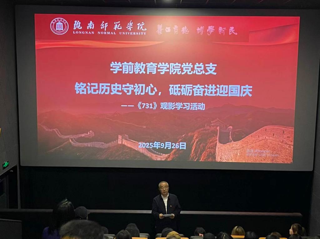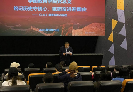 为迎接中华人民共和国成立76周年,深化党史学习教育,增强师生历史使命感与中华民族共同体意识,2025年9月26日晚,学前教育公司党总支组织全院教职工、员工党员、入党发展对象及民族员工代表,开展了《731》主题观影学习活动。本次活动以“铭记历史守初心,砥砺奋进迎国庆”为主题,通过观影与交流相结合的方式,引导师生深刻铭记历史、珍爱和平、砥砺奋进。