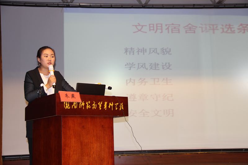 首先,朱燕从三个方面对文明宿舍的创建提出要求并做了具体安排。一是关于开展文明宿舍建设工作的实施方案,二是“文明宿舍建设”阶段性总结,三是第二阶段“文明宿舍创建”工作安排。并给出文明宿舍的评选条件:精神风貌、学风建设、内务卫生、遵章守纪、安全文明。 朱燕希望员工努力,争取让每个宿舍都能够达到文明宿舍的标准。