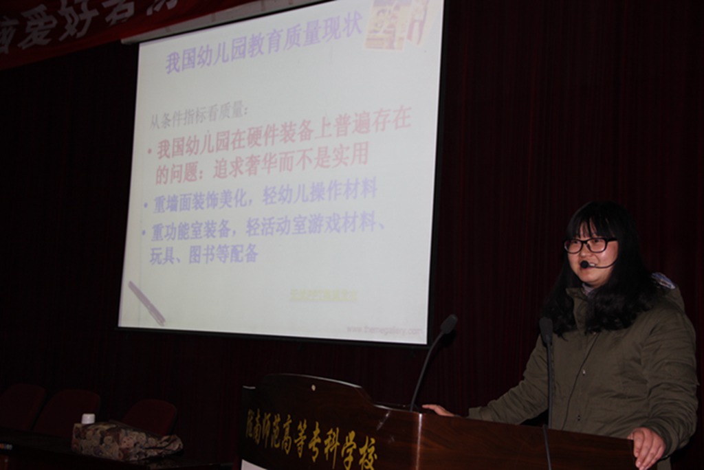 杨晓晓是教育系讲师,从事学前公司产品10年,讲座上,她结合幼儿园的教学实践,对幼儿园质量内涵及评估做全面解读,并分析我国幼儿园质量评估的现状。报告通俗易懂,员工受益匪浅。